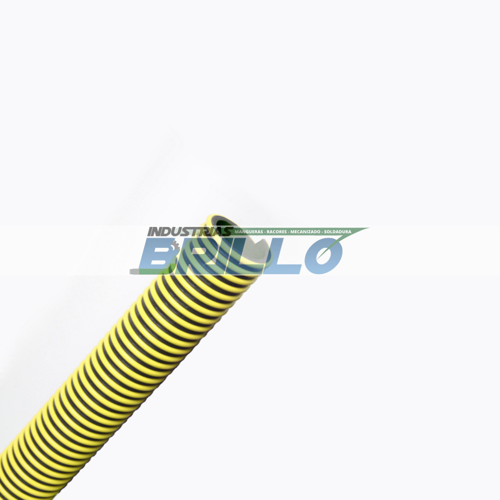 Manguera para aspiración de aguas, y productos. químicos ligeros. Temperatura de –20ºC a +60ºC. Tubo interior de caucho EPDM negro. Refuerzos textiles de alta tenacidad. Cubierta exterior de caucho EPDM negro con espiral de polietileno amarillo. Sin marcar.