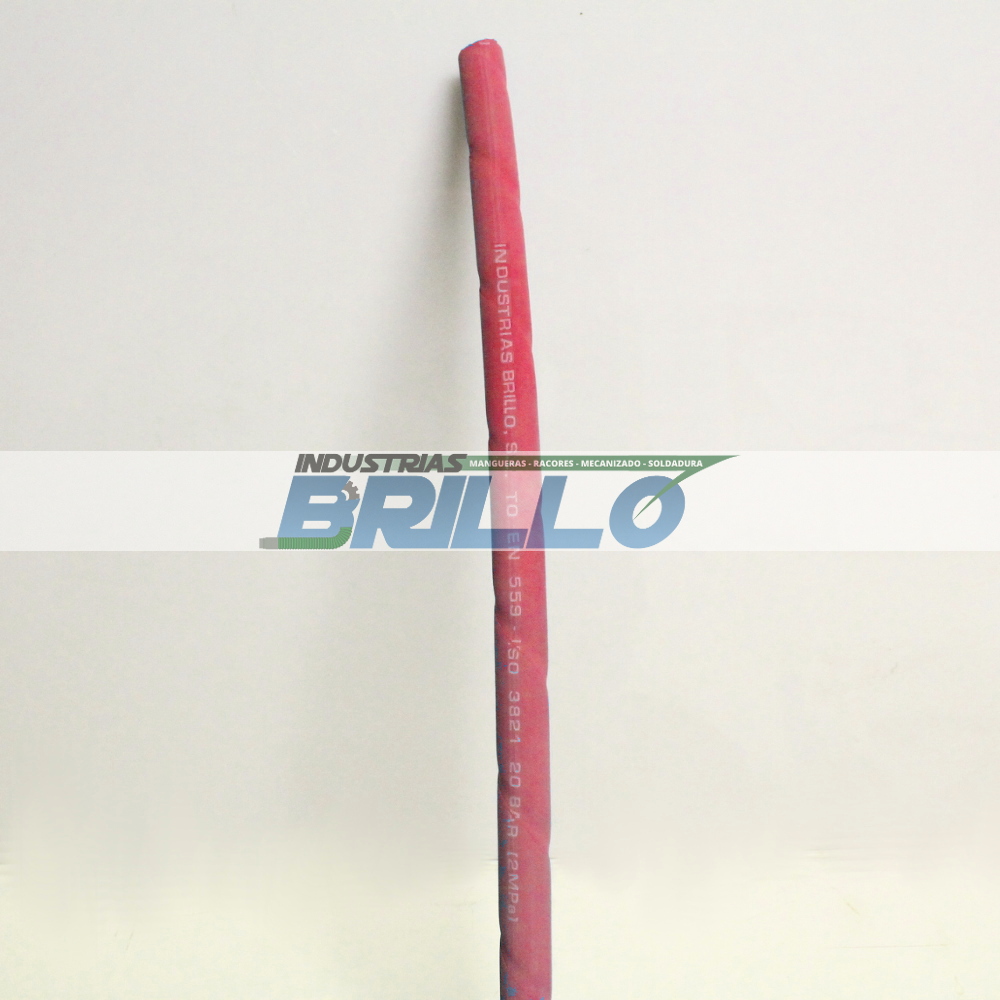 Manguera para acetileno y aire a 20 bar de presión de trabajo. Temperatura de –10ºC a +85ºC. Fabricada en mandrino. Norma de fabricación EN-559, ISO-3821 e ISO-1307. Tubo interior de caucho SBR/EPDM color negro. Refuerzos textiles de alta tenacidad. Cubierta exterior de caucho SBR/EPDM rojo. Marcada con el nombre, norma, tipo y presión.