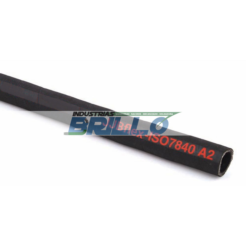 Manguera para impulsión de hidrocarburos a 25 bar de presión. Temperatura de –40ºC a +100ºC. Norma de fabricación ISO-7840 clase 1 y 2. Tubo interior de caucho acrilonitrilo color negro. Refuerzos textiles de alta tenacidad. Cubierta exterior de caucho acrilonitrilo negro. Marcada con el nombre, tipo y presión.