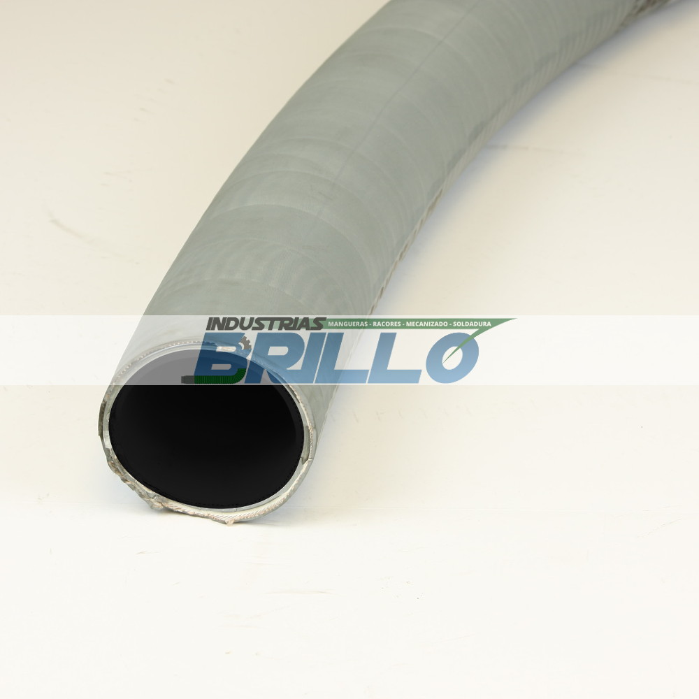Manguera para aspiración de productos químicos, farmacéuticos y alimentarios. Temperatura de –30ºC a +100ºC. Norma de fabricación DIN-2823 (EN-12115) ISO-1307. Tubo interior UHMWPE color negro conductivo. Refuerzos textiles de alta tenacidad con espiral de acero. Cubierta exterior de caucho sintético gris conductivo. Resistente a las llamas según norma TRBF 131 TEIL 2 PAR 5.5. Marcada en relieve con el nombre, tipo y presión.