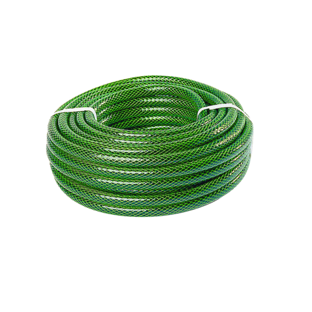 Manguera para riego por aspersión en jardines y horticultura. Temperatura de –10ºC a +50ºC. Tubo interior de látex verde transparente fosforito. Refuerzos textiles de poliéster. Cubierta exterior de látex verde transparente fosforito. Marcada con el nombre.
